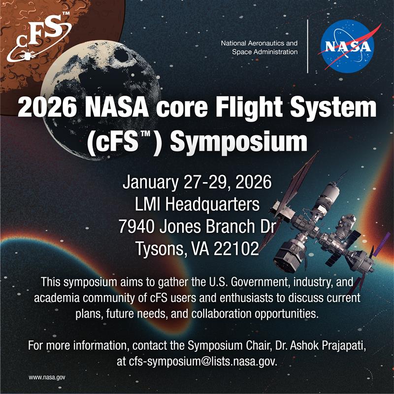 The 2026 NASA Core Flight System (cFS) Symposium will bring together leading experts, innovators, and community members to explore and advance the development of cFS-based flight software. This year’s event focuses on “Secure cFS-Based Flight Software and the Community’s Role in Advancing cFS.”